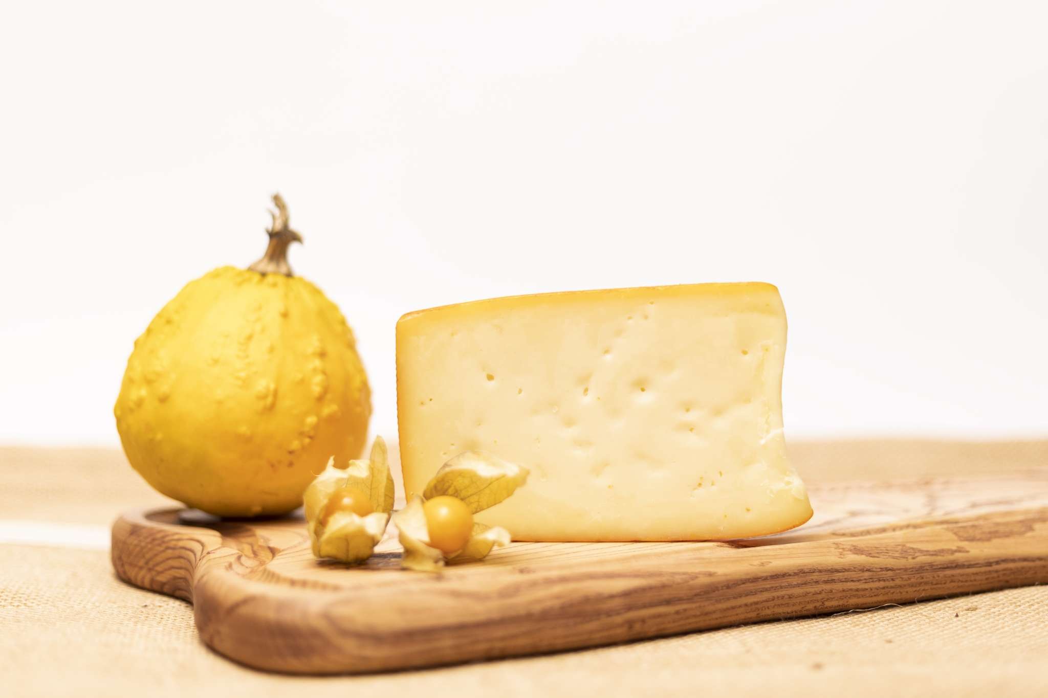 A semi-ripened, matured cheese, carefully made from pasteurised cow’s milk. Its reddish-yellow surface and thin rind reveal an interior with small holes the size of peppercorns and a slightly elastic, yellowish paste.
