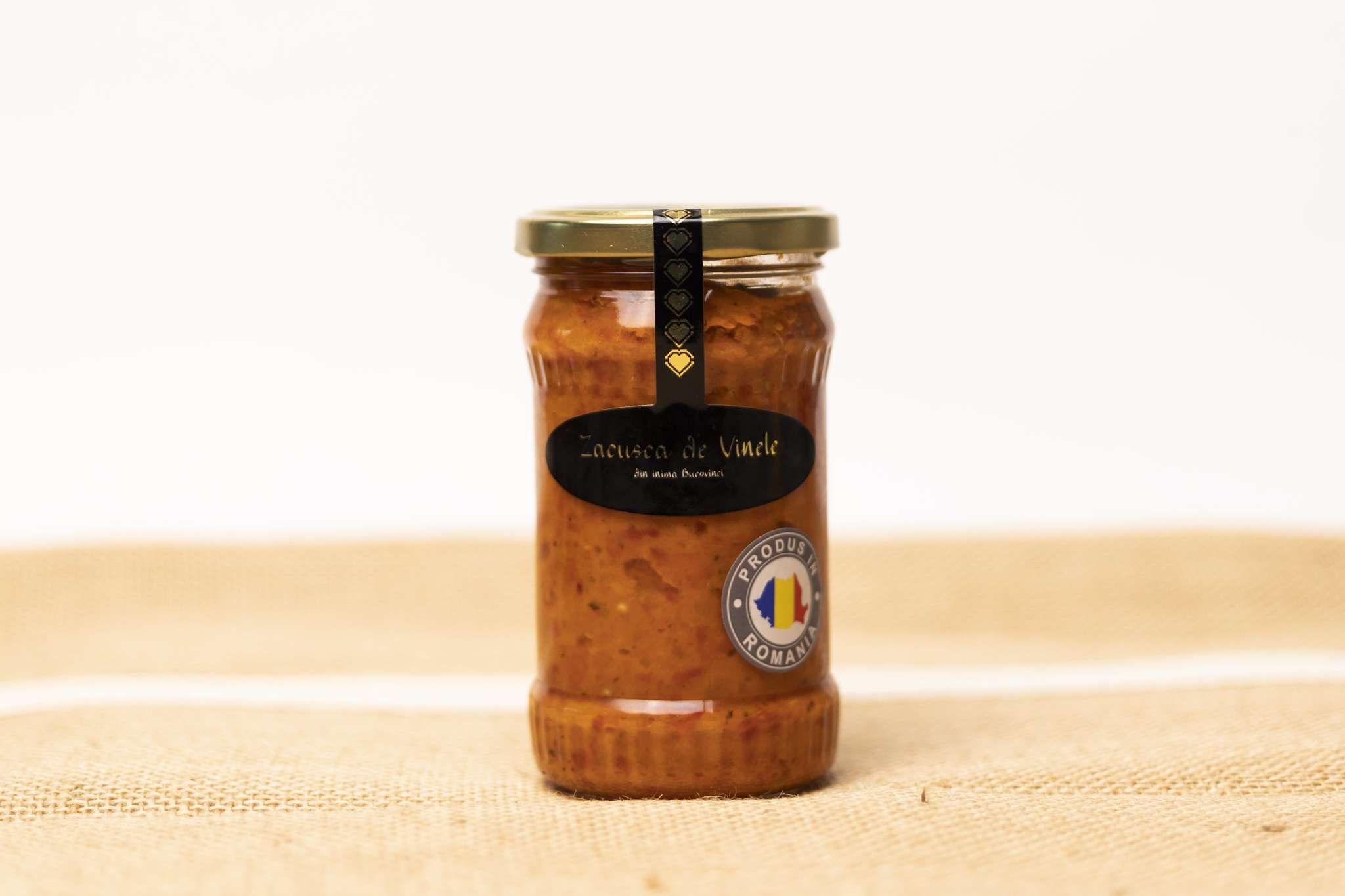 Homemade by hand by local housewives, the eggplant zacusca preserves authenticity and tradition. From the careful cooking of the aubergines and peppers, to the peeling and cooling, every detail is meticulously carried out. When the vegetables arrive in the cauldron over a gentle wood fire, the magic begins to take shape, and the housewives make sure that the authentic taste comes together perfectly, just as you would expect from a traditional recipe. Each jar of eggplant zacuscă brings with it the essence of authentic Bucovin cuisine, turning any meal into a culinary experience.